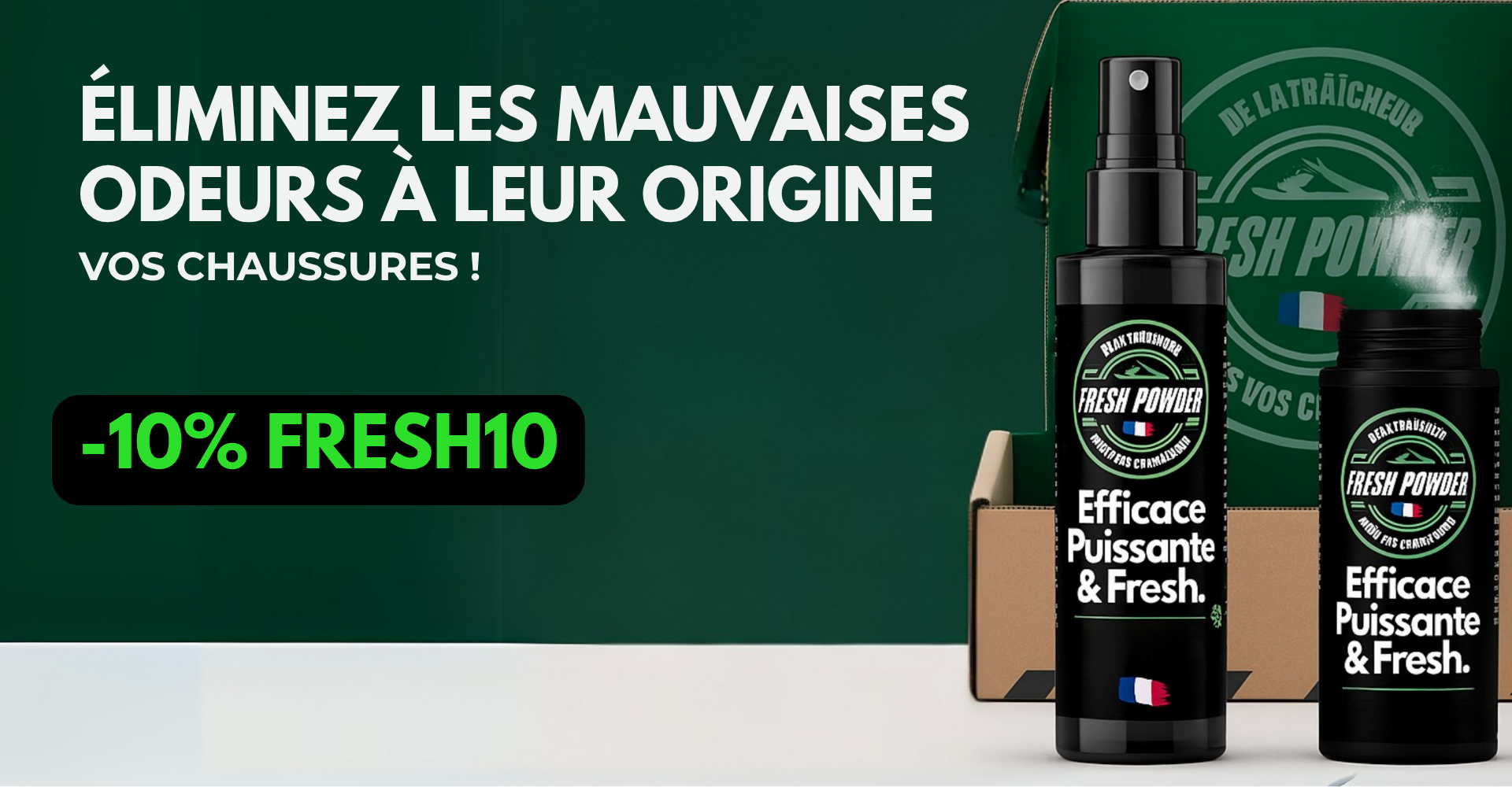Marre des mauvaises odeurs ? Passe à l’action avec Fresh Powder, la solution naturelle qui désodorise, hydrate et rafraîchit tes chaussures et tes pieds. Adopte un nouveau standard d’hygiène, sain et efficace.